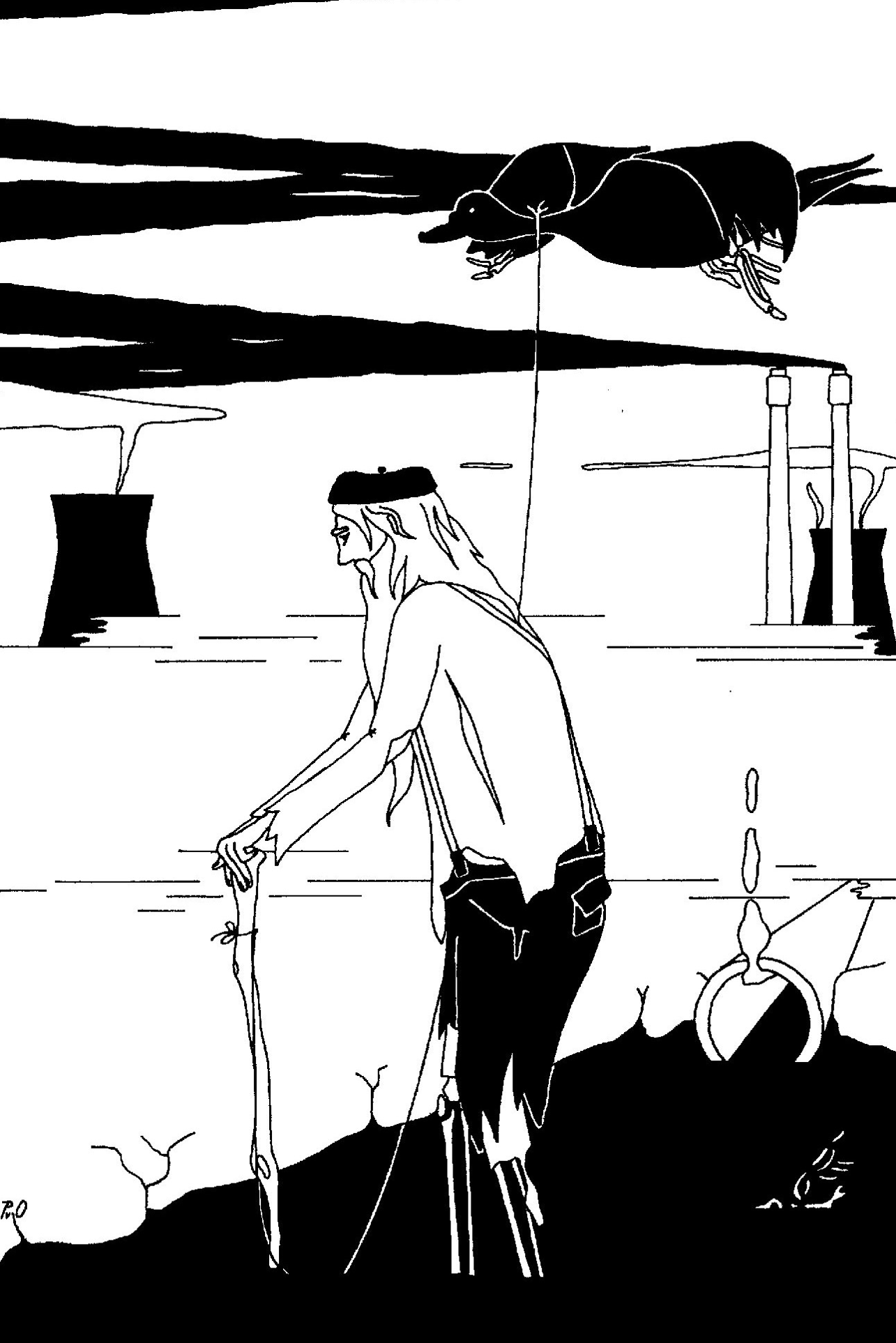 Lang geleden, tijdens mijn studietijd, heb ik met regelmaat getekend; met name met pen en inkt. Veel tekeningen bevatten veel symboliek. De teloorgang van het natuurlijke milieu die toen al gaande was (en nog steeds is helaas) inspireerde me. Dat zie je in veel tekeningen terug.